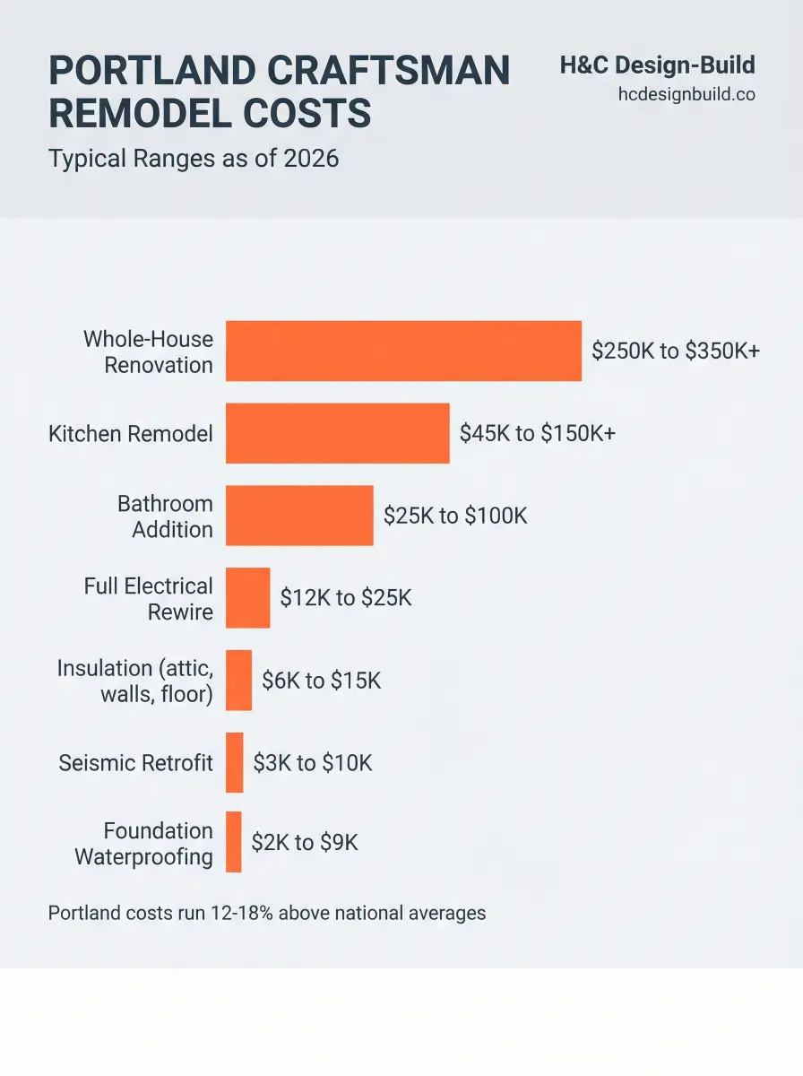 Every Craftsman remodel is different, but here's what Portland homeowners typically spend as of 2026: